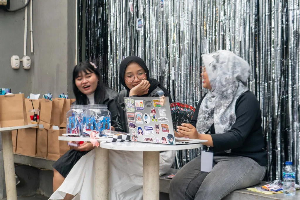 Saat sesi free time, pengunjung bisa menukarkan tiket mereka dengan menu yang sudah disediakan. Momen ini dimanfaatkan juga oleh para SOLF4M untuk Bertukar freebies dan merchandise yang mereka bawa, Saling berbincang dan berkenalan dan Berfoto-foto bareng di spot dekorasi.